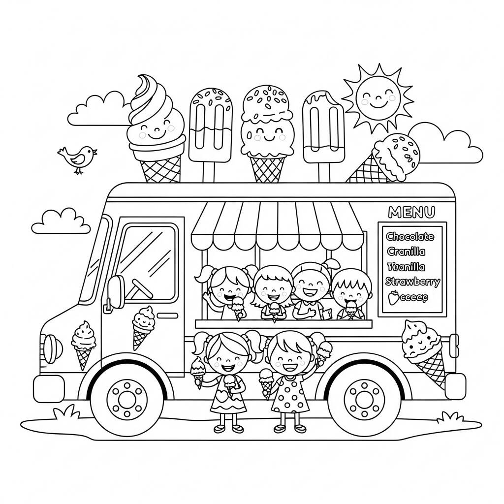 Es war ein sonniger Tag und Mr. Frozens Eiswagen stand im Park und lockte Kinder aus allen Ecken an. Die Kinder bildeten eine lebhafte Reihe und wollten unbedingt aus farbenfrohen und köstlichen Geschmacksrichtungen wie Erdbeere, Schokolade und sogar einem geheimnisvollen Regenbogengeschmack wählen. Mr. Ice Cream mit seinem lustigen Hut und seinem breiten Lächeln servierte das Eis meisterhaft, während Gelächter und Freudenschreie die Luft erfüllten. Jedes Kind ging mit einem Eis in der Hand und einem Augenzwinkern weg und versprach, wiederzukommen, sobald der Zauberwagen auftauchte. So wurde der Tag zu einem Fest der Aromen und des Lächelns, das jeden dazu veranlasste, für weitere kalte Abenteuer zurückzukommen.