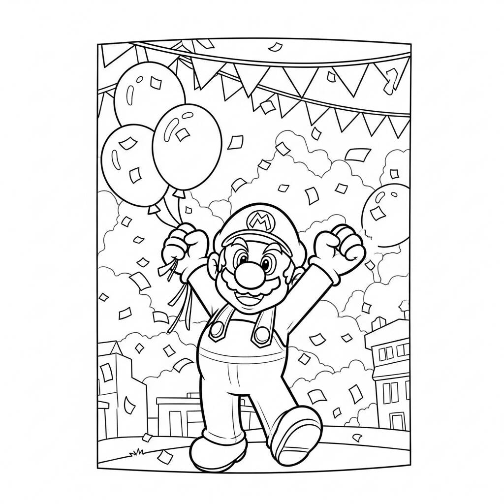 Heute ist ein besonderer Tag im Pilzkönigreich, denn Mario hat beschlossen, eine große Party zu organisieren, um seine Abenteuer und seine Freundschaft mit seinen Freunden zu feiern. Er füllte den Raum mit bunten Luftballons und Konfetti, während Luigi und Prinzessin Peach bei der Zubereitung köstlicher Kuchen und Süßigkeiten halfen. Toad brachte lebhafte Musik, um die Party noch mehr zu beleben, und alle waren bereit zu tanzen und Spaß zu haben. Als Mario die Kerzen auf der Torte anzündete, riefen alle „Alles Gute zum Geburtstag, Mario!“ im Einklang und schaffen so eine magische Atmosphäre voller Lachen. Die Party versprach, unvergesslich zu werden, voller Spiele und Überraschungen!