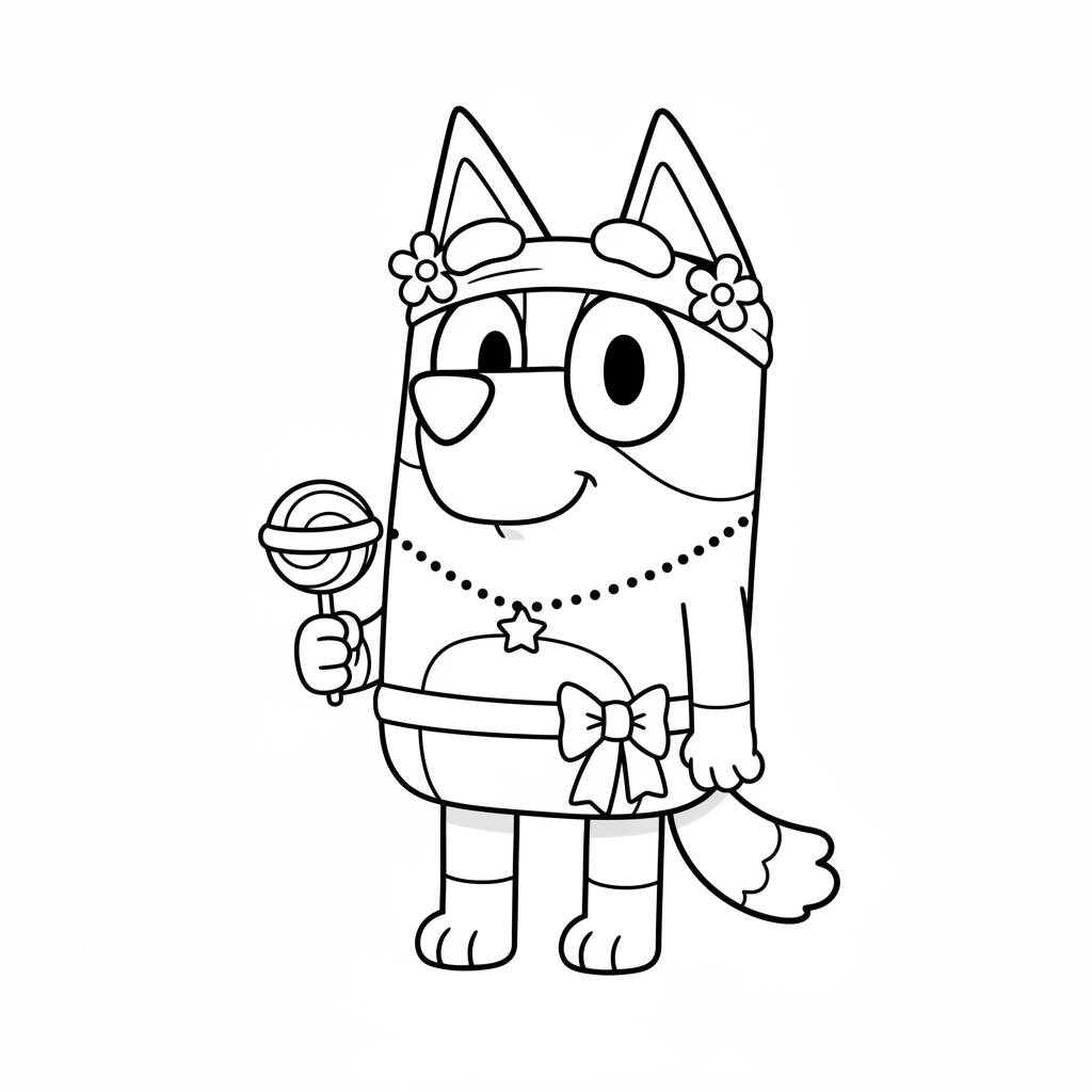 A fun coloring page of Bluey in costume, perfect for kids who love the series.