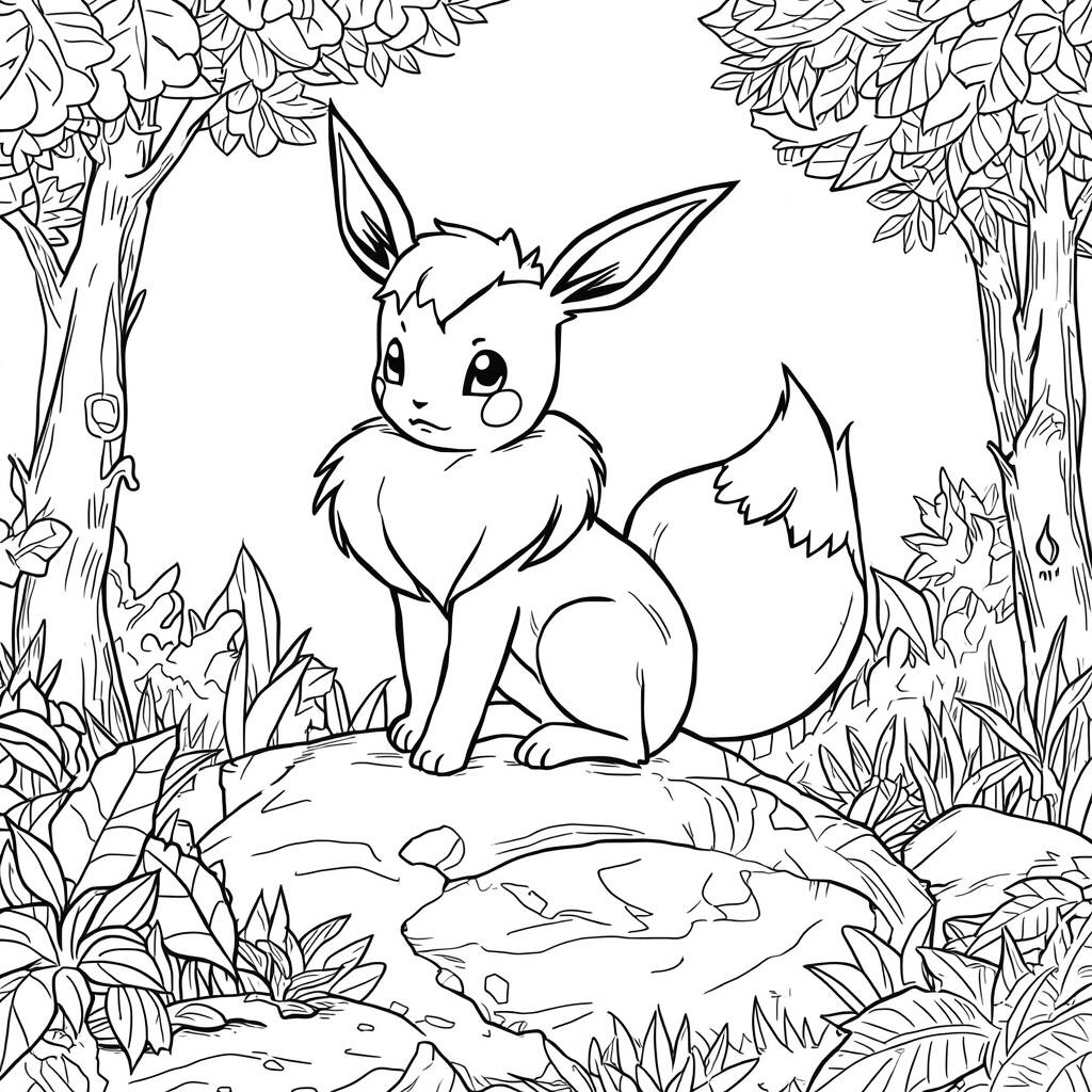 In the heart of a magical forest, a lifelike Eevee rests gracefully on a moss-covered rock. With his bright eyes and soft fur, he carefully watches the movement of leaves in the wind, as the sun's rays filter through the trees, creating a spectacle of light and shadow around him. The vibrant fauna and flora of the forest seem to dance in harmony, reflecting the beauty and serenity of the place. Eevee, always curious, awaits a new friend who can join him on his adventures, dreaming of the paths that life still has to offer.