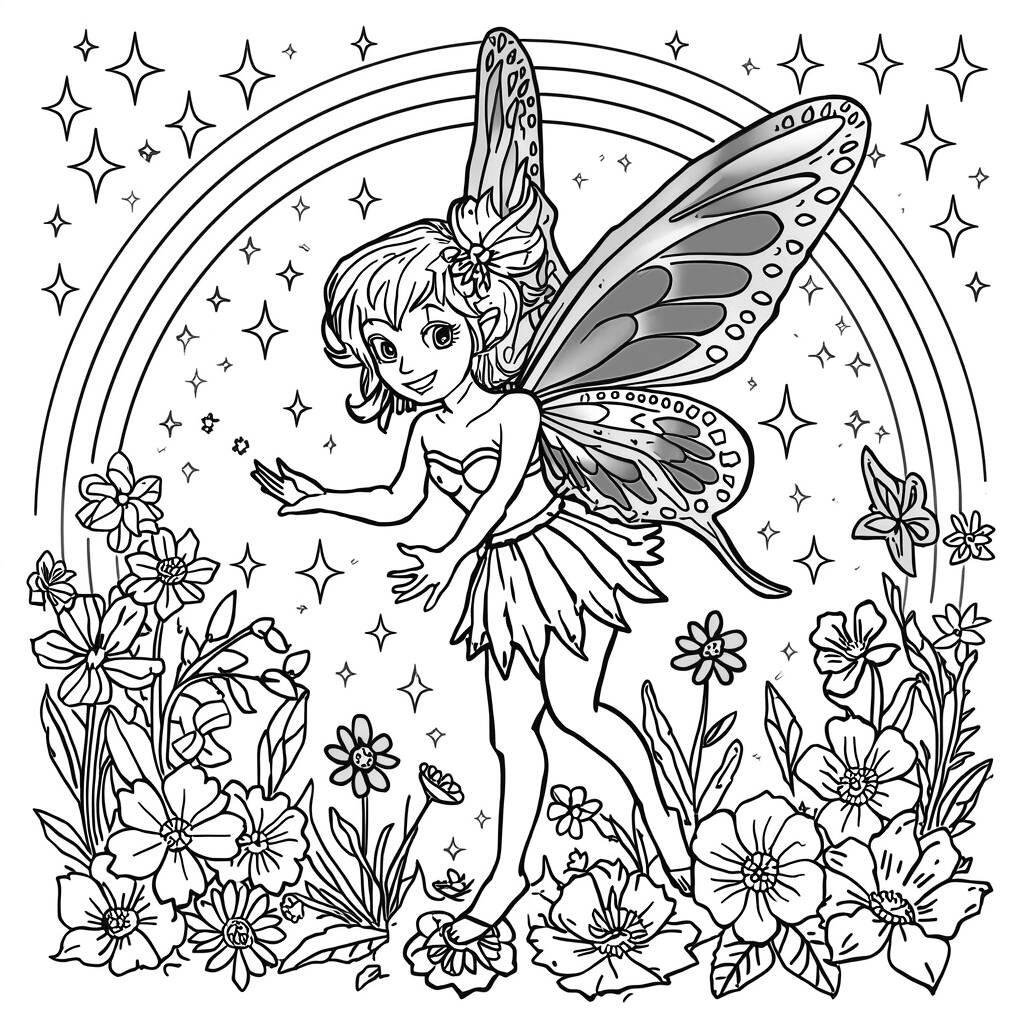 In a magical and colorful world, the Color Fairy flew happily among bright and shining flowers. With her vibrant wings, she spread enchanted paints wherever she went, transforming the gray into a dazzling rainbow. The forest creatures adored her, as her presence brought joy and harmony. One day, a dark cloud threatened to cover the sky, but the Fairy, determined to keep the light alive, teamed up with her friends to create a great work of art in the sky. Together, they drew a rainbow so radiant it chased away the darkness, showing that friendship and creativity can overcome any challenge.