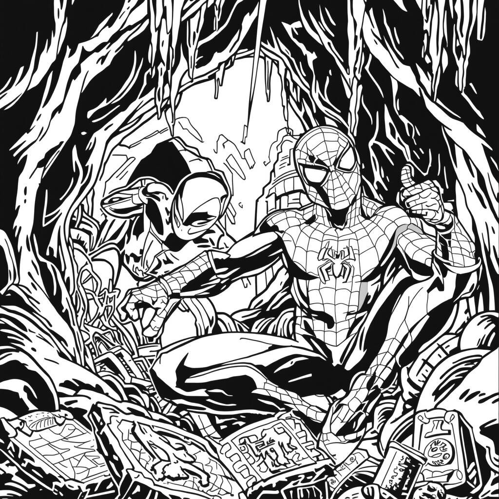 On a sunny afternoon, Spider-Man decided to explore a mysterious cave that had recently been discovered in the city. Curious and excited, he ventured inside, where the walls were covered in ancient inscriptions and forgotten relics. As he delved deeper, he found a chest full of treasure, but also awakened an ancient guardian creature that was unwilling to let intruders touch its treasure. With his agile and cunning skills, Spider-Man had to use all his intelligence to uncover the cave's secrets and protect the valuable artifacts from falling into the wrong hands, while facing unexpected challenges along the way.