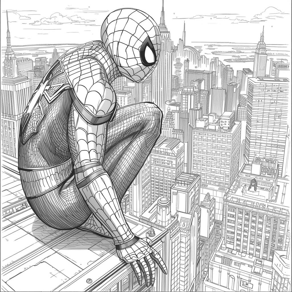 In the heart of New York, Spider-Man surveys the city from the top of a skyscraper, his heightened senses picking up every movement in the streets below. He reflects on the responsibility he carries, knowing that as long as he is around, the citizens will be protected. With his superhuman agility and strength, he prepares to face villains who threaten peace. The sky at dusk paints the city with shades of orange and purple, creating a perfect setting for another night of adventures. So, with a precise leap, he launches himself towards the horizon, ready to save the day once again.