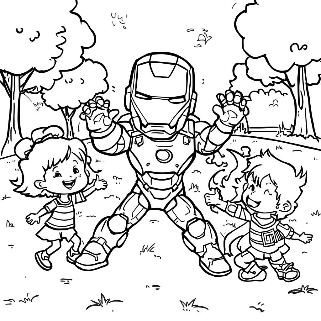 On a sunny day at the park, Iron Man decided to take some time to have fun with the children. Dressed in his shining armor, he flew low, performing acrobatics and leaving everyone in awe. Children laughed and ran after him as he released colorful sparks and created fun shapes in the sky. “Let's build a sandcastle!” he exclaimed, and soon everyone was together, shaping towers and walls with smiles of joy. Iron Man, with his generous heart, showed that even superheroes also need time to play and spread happiness.