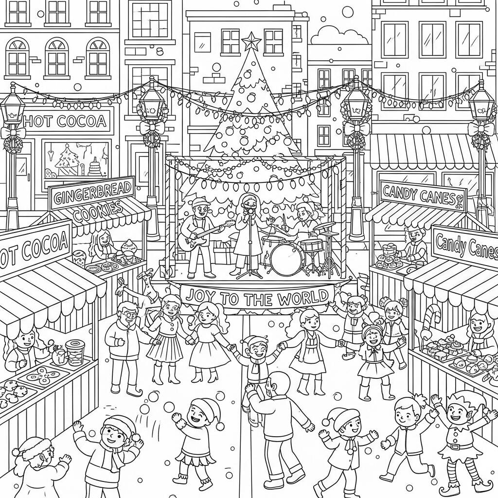In the heart of the city, Christmas turns into a huge street party, where families and friends come together to celebrate. The streets are lit up with bright lights and decorated with colorful garlands, creating a magical atmosphere. The aroma of typical foods, such as French toast and roasted ham, fills the air, while musicians play Christmas carols, involving everyone in a festive spirit. Children laugh and play, while adults share stories and laughs. The party becomes a moment of togetherness, where everyone celebrates the love and joy of Christmas, making memories that will last forever.