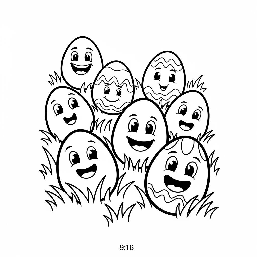 Easter was coming and the colored eggs were getting ready for a big party in the countryside. On a sunny day, a group of eggs decided to get together and, with bright smiles, formed a fun circle in the middle of the green grass. Each egg had its own happy expression, reflecting the happiness of the season. They began to play hide and seek among the flowers, while the bunnies watched with satisfied smiles. The magic of Easter surrounded everyone, and the laughter of the eggs echoed across the field, bringing a feeling of unity and joy that warmed the hearts of everyone around.