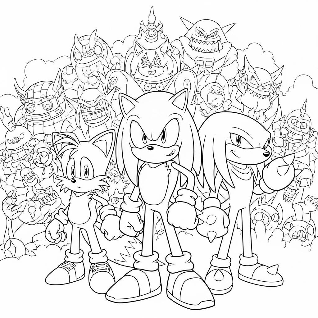 On a sunny morning in Sonic's world, our heroes, Sonic, Tails and Knuckles, come together to face a new threat that appears on the horizon. Dr. Eggman, with his evil plans, decided to capture the Chaos Emeralds to dominate the world. With courage and determination, Sonic leads the team, while Tails uses his intelligence to devise strategies and Knuckles prepares to fight with all his strength. Together, they face not only Eggman, but also his dangerous enemies, such as Metal Sonic and Shadow. Their friendship and bravery will be tested, but unity is the key to saving the day and protecting what they love most.