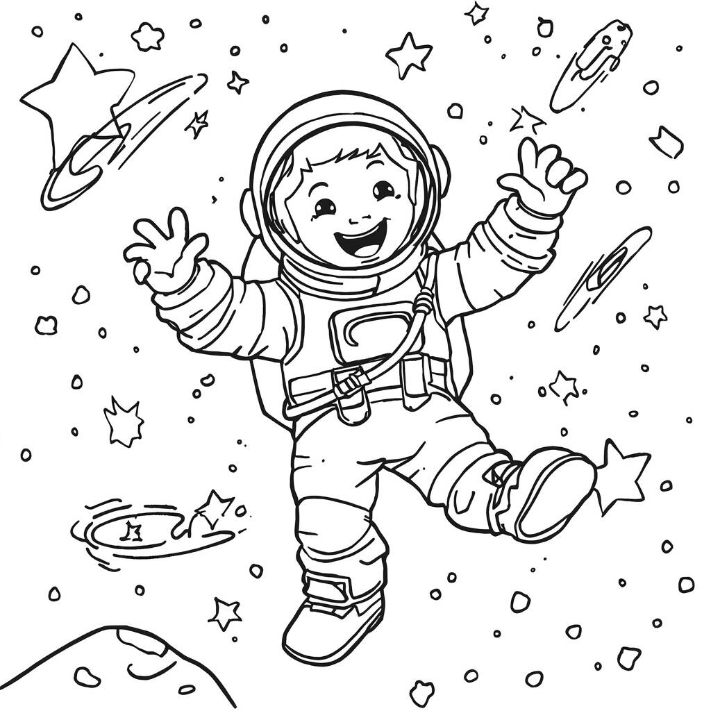 En el vasto espacio, un astronauta llamado Theo flota entre estrellas brillantes y cometas danzantes, con una sonrisa radiante en su rostro. Siempre soñó con explorar el universo, pero nunca imaginó que podría jugar con las estrellas como si fueran canicas. Con movimientos ligeros y divertidos, Theo lanza cometas al aire e intenta recuperarlos, riendo en cada intento. El espacio que lo rodea es un espectáculo de colores y formas, donde se siente libre y feliz. Entre risas y aventuras, Theo descubre que la verdadera magia del universo reside en la alegría de jugar y soñar.
