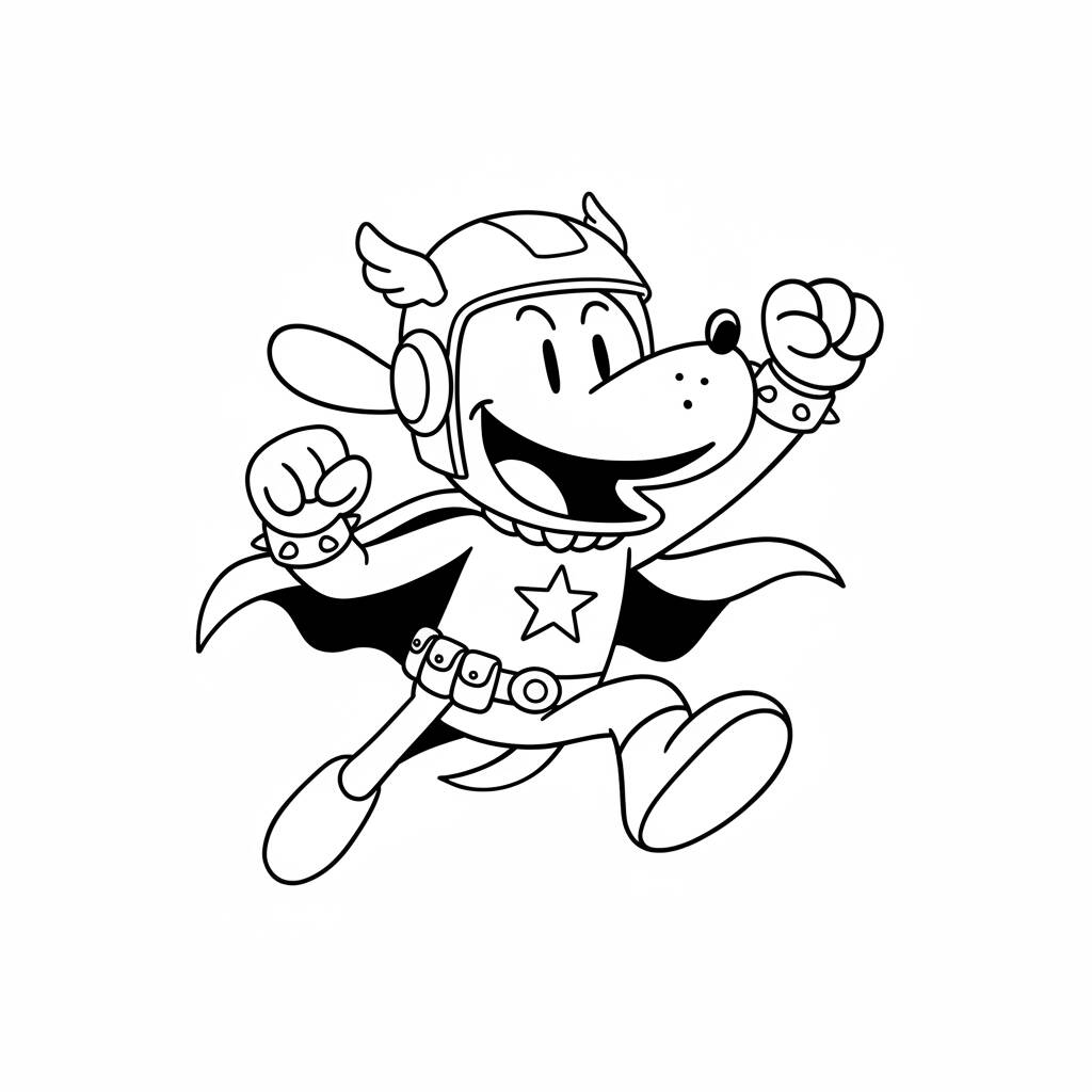 Una divertida ilustración de Dog Man como superhéroe, perfecta para los fans de la serie.