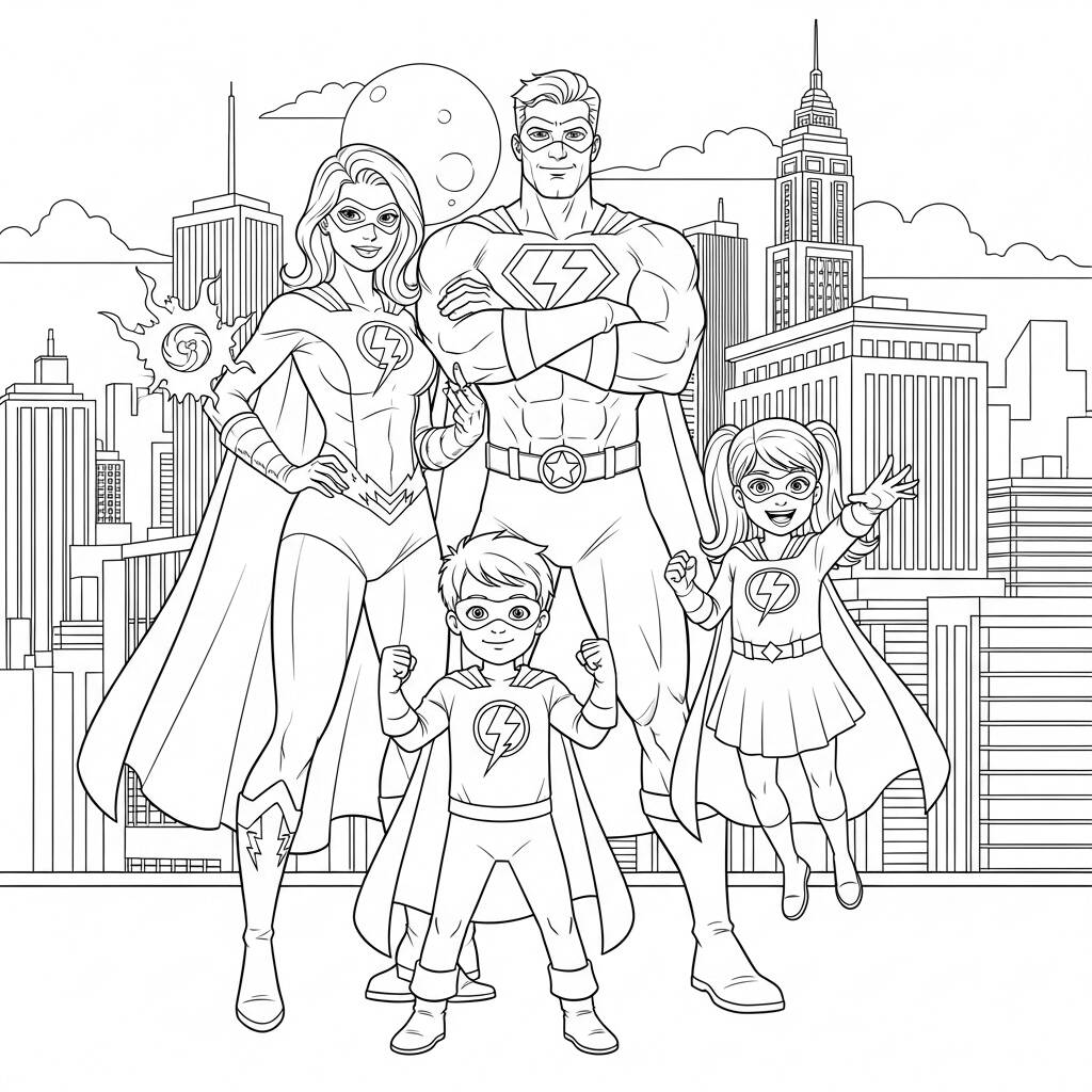En una ciudad llena de desafíos, la familia Silva se destaca como un verdadero equipo de superhéroes. Cada miembro tiene un poder único: el padre, con su extraordinaria fuerza, protege la ciudad de las amenazas, mientras que la madre, con su capacidad de volar, observa desde arriba y alerta a los demás. Los niños, uno con la capacidad de volverse invisible y el otro con superinteligencia, ayudan a resolver misterios y planificar estrategias. Juntos se enfrentan a los villanos y salvan el día, siempre unidos y listos para cualquier aventura. La ciudad los admira, no sólo por sus poderes, sino por el amor y compañerismo que muestran en cada misión.