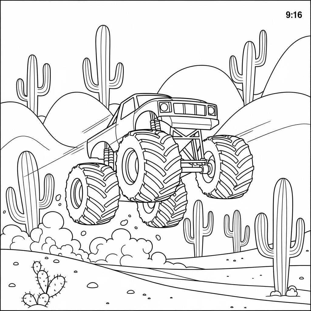 En el vasto desierto, donde las arenas bailan con el viento y los cactus se alzan como centinelas, un enorme Monster Truck acelera a través de una emocionante carrera. Su motor ruge como un trueno mientras el vehículo gigante salta dunas y supera obstáculos desafiantes. El sol brilla intensamente y se refleja en las enormes ruedas que levantan nubes de polvo. El piloto, lleno de adrenalina, maniobra con destreza, desafiando la gravedad y realizando impresionantes acrobacias. El paisaje árido se transforma en un escenario de aventuras, donde la velocidad y la emoción se encuentran en una feroz competencia. El desierto, con sus montañas de fondo, se convierte en el escenario perfecto para esta carrera épica, donde cada giro es una nueva oportunidad para conseguir la victoria.