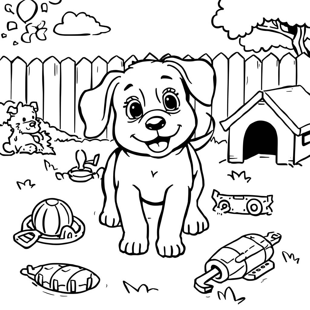 Il était une fois un chien nommé Max qui aimait jouer dans le jardin ensoleillé. Les oreilles pendantes et la queue toujours remuante, il passait ses journées à courir après les balles et à se cacher derrière sa petite maison. Max avait une façon particulière de se lier d'amitié avec tous les garçons du quartier, leur faisant toujours sourire avec ses pitreries. Un jour, en explorant le jardin, il a trouvé un nouveau jouet : une corde colorée. Enthousiasmé, Max a tiré sur la corde, faisant rire les garçons et le rejoignant dans un après-midi de jeux amusant, plein de rires et de joie.