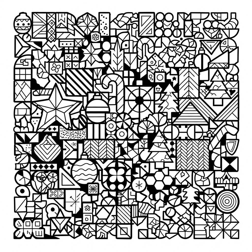 Dans un village enchanté, Noël approchait et les couleurs vibrantes des décorations envahissaient les rues. Les enfants excités se sont rassemblés pour dessiner des formes géométriques sur de grandes feuilles de papier, inspirées par les lumières et les décorations qui ornaient chaque coin. Entre rires et jeux, un groupe a décidé de créer une immense fresque collective, où chacun apporterait ses propres créations colorées. À mesure que le ciel s’assombrissait, les étoiles commençaient à briller, reflétant la magie de Noël. L'unité et la créativité ont transformé le village en un véritable spectacle de couleurs et de formes, célébrant l'amitié et la joie en cette période particulière.