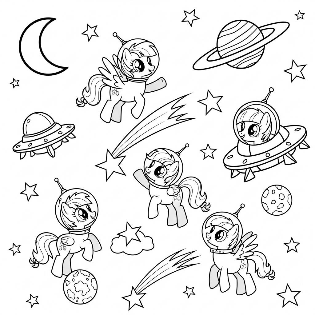 Dans une galaxie lointaine, les Poneys s'aventurent dans une mission passionnante à travers l'espace ! Twilight Sparkle, Rainbow Dash et Pinkie Pie embarquent à bord d'un vaisseau spatial magique, explorant des planètes colorées et des étoiles brillantes. Au cours de leur voyage, ils rencontrent des créatures étranges et enchanteresses, et chaque planète apporte de nouveaux défis et des amitiés inattendues. En affrontant des tempêtes cosmiques et en résolvant des énigmes intergalactiques, les Poneys découvrent l'importance de l'amitié et du courage. Ensemble, ils découvrent que le véritable trésor ne réside pas dans les planètes qu’ils visitent, mais dans les liens qu’ils nouent tout au long du voyage. Préparez-vous pour une aventure pleine de plaisir et de magie sous les étoiles !