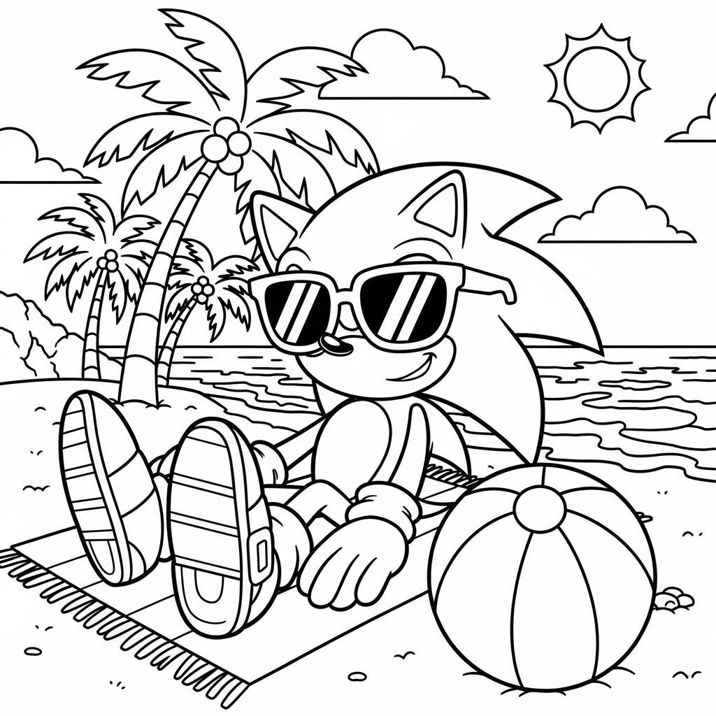 En été, Sonic a décidé de prendre une journée de congé de sa routine de course et d'aventure pour se détendre sur la plage. Portant ses lunettes de soleil élégantes, il a couru sur le sable chaud en lançant un ballon de plage coloré avec ses amis Tails et Knuckles. Les palmiers se balançaient au gré du vent, créant l’atmosphère idéale pour une journée de divertissement au soleil. Alors que les surfeurs glissaient sur les vagues, Sonic s'est lancé dans une course amicale avec Tails, riant et profitant de chaque instant. La journée s'est terminée par un magnifique coucher de soleil et Sonic s'est rendu compte qu'il était parfois bon de ralentir et de profiter de la vie avec ses amis.