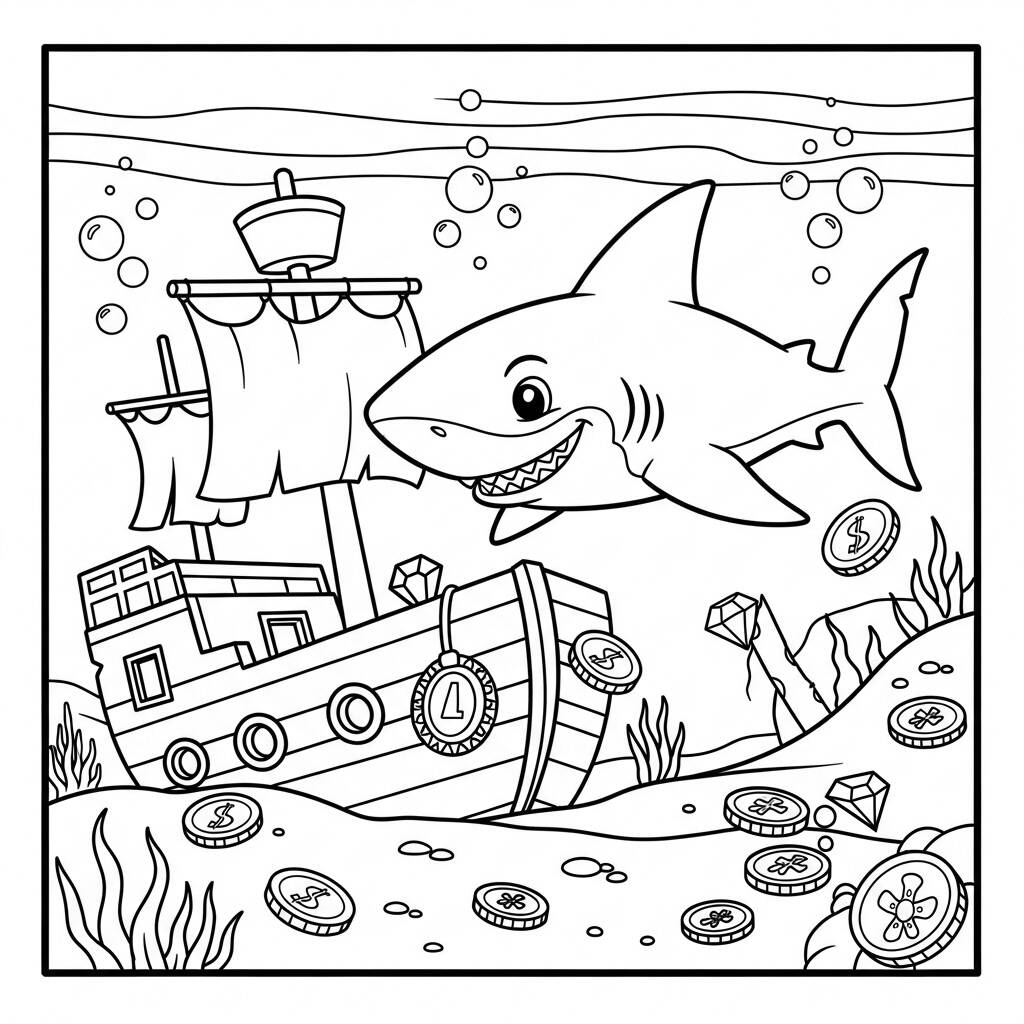 In un vasto oceano blu, Squalo, noto per il suo coraggio e la sua curiosità, decide di esplorare una vecchia nave affondata che, secondo la leggenda, custodisce tesori inimmaginabili. Con le sue scaglie luccicanti alla luce del sole che penetra nelle acque, nuota verso la nave misteriosa, dove trova scintillanti monete d'oro e gioielli abbaglianti sparsi sul fondo del mare. Mentre indaga in ogni angolo della nave, Jaws fa nuove amicizie, come una saggia tartaruga e un banco di pesci colorati, che lo aiutano a scoprire i segreti del passato. Insieme, affrontano sfide e insidie, dimostrando che la vera ricchezza risiede nell'amicizia e nelle avventure condivise.
