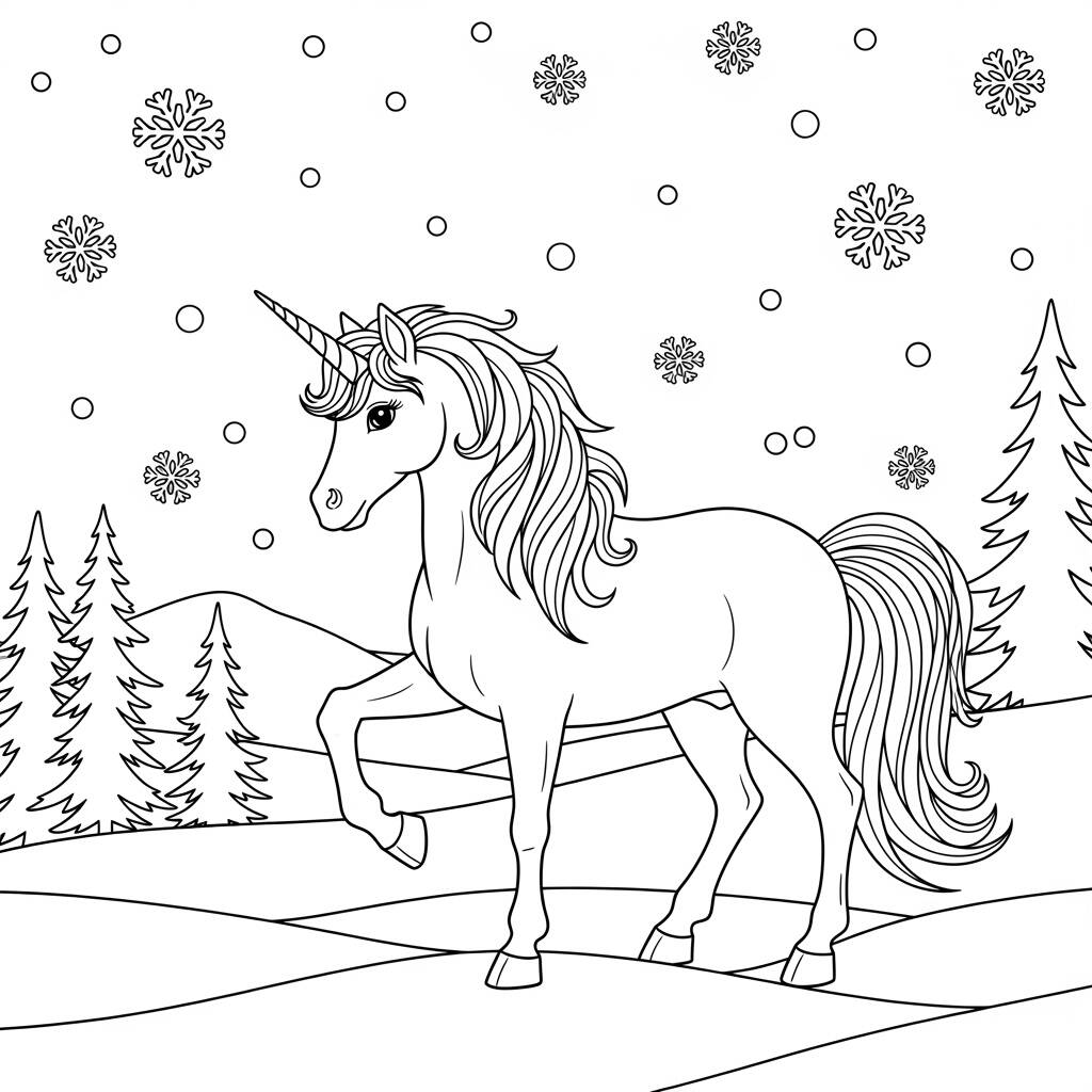 Nel regno incantato di Eldoria, un unicorno di nome Lumen passeggiava attraverso un paesaggio ricoperto di scintillanti fiocchi di neve. Ad ogni passo, la sua criniera brillava alla luce del sole, riflettendo i colori dell'arcobaleno. Mentre camminava, Lumen osservava le piccole creature della foresta che si divertivano nella neve, costruendo bambole e giocando. All'improvviso cominciò a cadere una tempesta di neve, ricoprendo ogni cosa con un soffice manto bianco. L'unicorno ha deciso di usare la sua magia per creare uno spettacolo di luci, illuminando il cielo e trasformando la tempesta in una magica danza di fiocchi di neve, dove tutti potevano unirsi ai festeggiamenti.