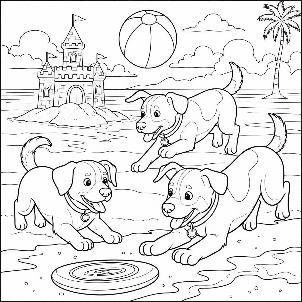 W upalne lato plaża zamienia się w prawdziwy raj dla psów. Max, wesoły labrador, goni kolorowe frisbee, a Bella, uroczy buldog, próbuje złapać piłkę plażową toczącą się po piasku. W tle słychać śmiech dzieci i wznosi się majestatyczny zamek z piasku, wykonany małymi, kreatywnymi rączkami. Psy bawią się, mokną w falach i dzielą chwile czystej radości w promieniach słońca. To idealny dzień na zabawę i cieszenie się przyjaźnią, gdzie szczęście mierzy się machaniem ogonami i szczekaniem radości.