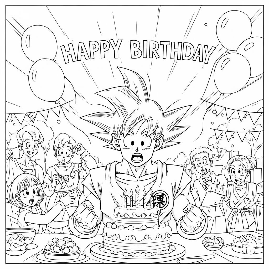 Na urodziny Goku jego przyjaciele postanowili zorganizować dla niego przyjęcie-niespodziankę, pełną kolorowych balonów i ogromnego ciasta czekoladowego. Podczas gdy Goku trenował, Bulma, Vegeta i pozostali zebrali się, aby udekorować miejsce i przygotować niezapomnianą uroczystość. Kiedy Goku w końcu przybył, powitano go okrzykami „Niespodzianka!” a jego twarz rozjaśniła się szczęściem, gdy zobaczył wszystkich razem. Wzruszył się uczuciem przyjaciół i po zdmuchnięciu świeczek na torcie wszyscy zebrali się na huczną imprezę, pełną śmiechu, zabaw i oczywiście mnóstwa pysznego jedzenia. Przyjaźń i radość unosiły się w powietrzu, czyniąc ten dzień wyjątkowym dla wszystkich.