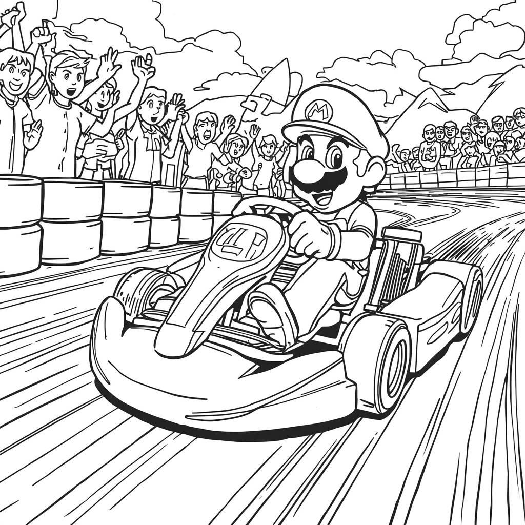 W ekscytującym turnieju Mario Kart Mario i jego przyjaciele przygotowują się do elektryzującego wyścigu na najbardziej wymagających torach w Królestwie Grzybów. Przy ryku silników i wiwatach publiczności Mario w swoim gokarcie stylizowanym na szybkie paski wyróżnia się wśród konkurentów. Na każdym kroku wykorzystuje swoje umiejętności pilotażu, aby omijać przeszkody i zbierać magiczne przedmioty, podczas gdy Luigi, Peach i Bowser walczą o pierwsze miejsce. Atmosfera jest przepełniona adrenaliną i oczekiwaniem, a o zwycięstwo będzie walczyć do ostatniej sekundy, a każdy biegacz będzie zdeterminowany, by zabrać do domu trofeum mistrza.