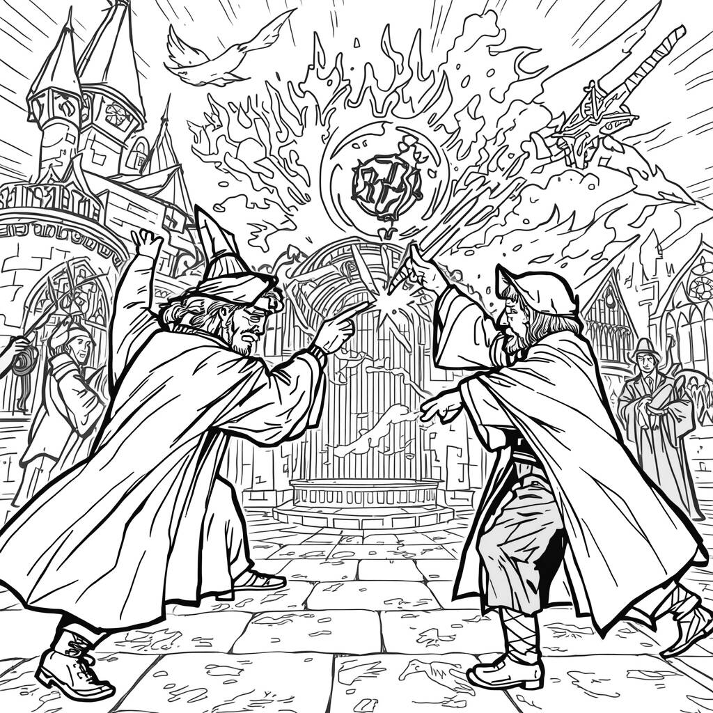 No coração de Hogwarts, uma batalha épica se desenrola entre os bruxos mais poderosos da escola. Harry Potter, acompanhado de seus fiéis amigos Hermione e Rony, enfrenta um grupo de seguidores de Voldemort determinados a dominar o castelo. Feitiços coloridos cortam o ar, enquanto gritos de coragem e determinação ecoam pelos corredores antigos. As paredes de pedra, testemunhas de tantas histórias, agora vibram com a energia mágica que flui entre os duelistas. O destino de Hogwarts está em jogo, e a bravura dos jovens bruxos será testada como nunca antes, revelando a verdadeira força da amizade e do amor em tempos de trevas.