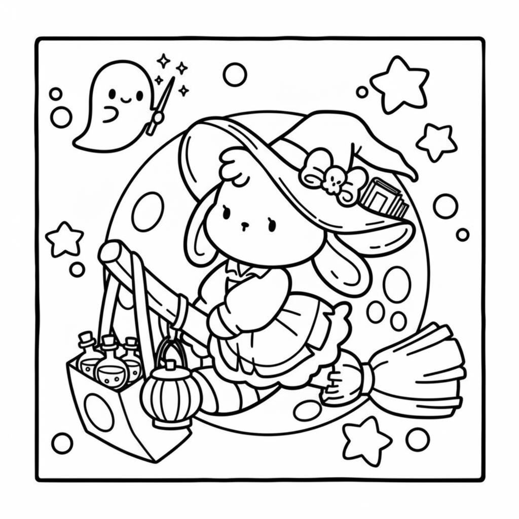 Uma divertida cena de amigos aconchegantes em uma vassoura, perfeita para estimular a criatividade.