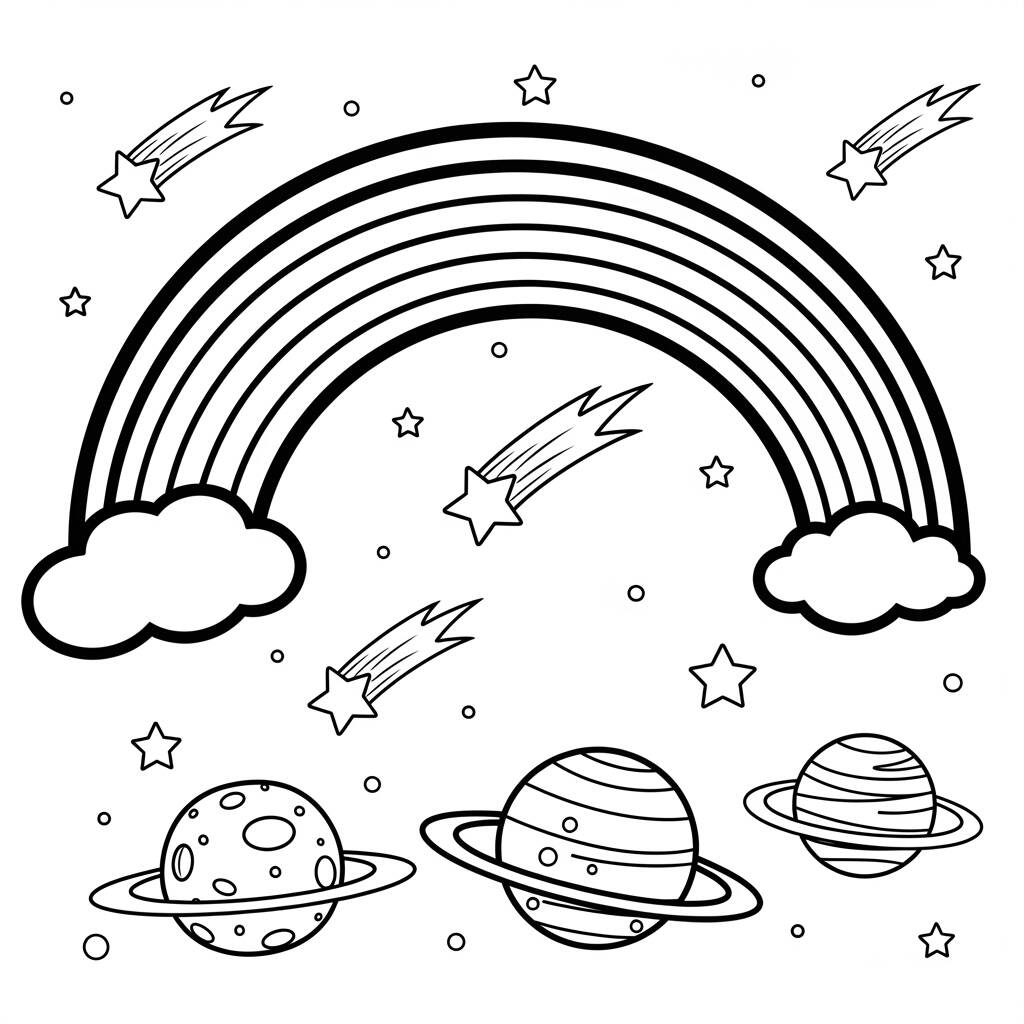 No vasto universo, onde estrelas dançam e planetas brilham, um arco-íris mágico surge no espaço. Ele é feito de cores vibrantes que se entrelaçam, trazendo alegria a todos os seres cósmicos. Numa noite estrelada, um pequeno cometa, chamado Luno, decide seguir o arco-íris em uma aventura emocionante. Ao longo do caminho, Luno encontra planetas que mudam de cor e estrelas cadentes que sussurram segredos. Juntos, eles descobrem que o arco-íris é uma ponte que conecta diferentes mundos, e que a amizade é a verdadeira essência que colore o universo. Com cada nova amizade, o arco-íris se torna ainda mais brilhante, iluminando o espaço com amor e esperança.