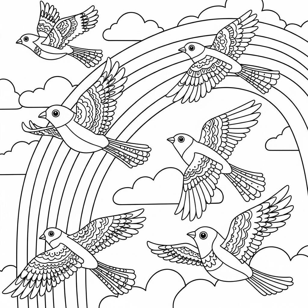 Em um dia ensolarado, um arco-íris magnífico apareceu no céu, e logo uma revoada de pássaros coloridos começou a dançar sob suas cores vibrantes. Entre eles, havia um pequeno passarinho chamado Pipo, que sonhava em tocar o arco-íris com suas próprias asas. Ele voou alto, acompanhado por seus amigos, cada um mais bonito que o outro, e juntos exploraram as nuvens e a luz do sol. Enquanto voavam, Pipo percebeu que a verdadeira beleza não estava apenas nas cores do arco-íris, mas na amizade e nas aventuras que compartilhavam. Assim, sob o céu azul, eles aprenderam que a felicidade está nas pequenas coisas da vida.