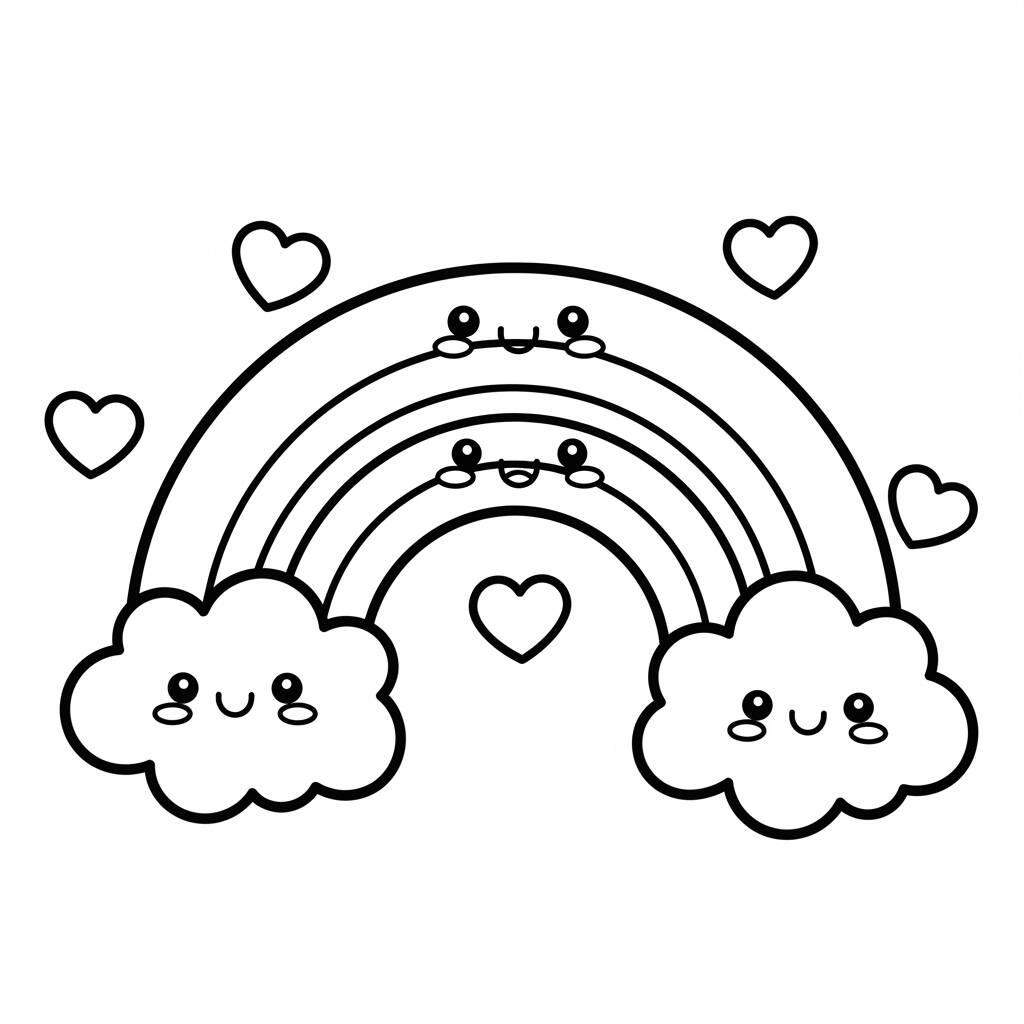 Em um mundo mágico onde cores dançam e sorrisos são constantes, o Arco-Íris Kawaii Animado surge no céu, trazendo alegria a todos os cantos. Ele é formado por nuvens sorridentes que espalham corações e risadas, encantando crianças e adultos. Cada cor do arco-íris tem um poder especial: o vermelho traz amor, o azul traz tranquilidade e o amarelo traz felicidade. Juntos, eles se unem em uma grande festa, onde os habitantes da terra colorida se reúnem para celebrar a amizade e a diversão. E assim, o Arco-Íris Kawaii continua a iluminar a vida de todos, lembrando que a felicidade está nas pequenas coisas.