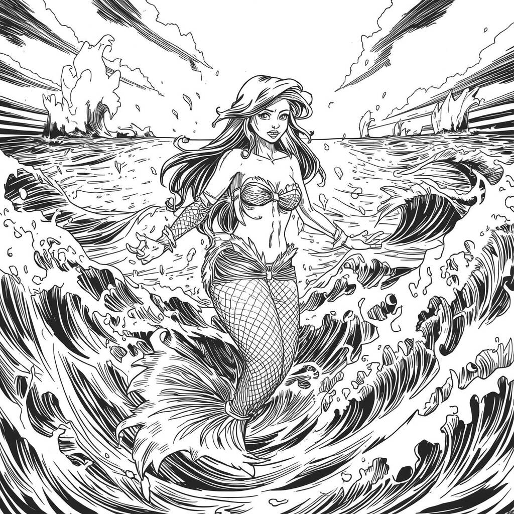 Ariel, a jovem sereia, sempre sonhou em explorar o mundo acima das ondas. Em uma tarde tempestuosa, ela decidiu que era hora de enfrentar seus medos e navegar pelas águas turbulentas do mar. Com o coração acelerado, Ariel lançou-se ao mar revolto, desafiando as ondas que se erguiam como gigantes. Enquanto a tempestade rugia ao seu redor, ela lembrou-se das histórias que seu pai, o rei Tritão, contava sobre coragem e determinação. Com cada onda que quebrava, Ariel sentiu a força do oceano e a certeza de que, mesmo nas tempestades mais intensas, a bravura e a esperança podem guiar o caminho. Assim, ela seguiu em frente, determinada a descobrir o que havia além do horizonte tempestuoso.