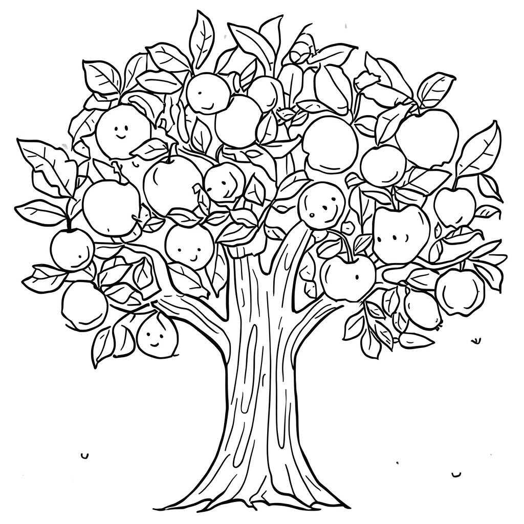 Em um belo pomar, havia uma árvore mágica chamada Árvore de Frutas, que carregava os frutos mais deliciosos e sorridentes que você já viu. Cada maçã, laranja e banana tinha um rosto adorável e uma personalidade única. As frutas se reuniam todos os dias para contar histórias e brincar sob a sombra da árvore. Um dia, uma garotinha chamada Clara descobriu a árvore e ficou encantada com a alegria que os frutos transmitiam. Ela decidiu levar seus amigos para conhecer a Árvore de Frutas, e juntos, passaram dias colorindo as frutas e criando memórias inesquecíveis, enquanto aprendiam sobre amizade e a importância da natureza.