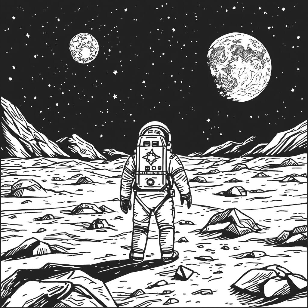 No vasto silêncio da Lua, um astronauta solitário observa a Terra brilhando como um ponto azul no infinito. Com seu traje espacial brilhante, ele caminha lentamente pela superfície lunar, admirando as crateras e as montanhas que se estendem até onde os olhos conseguem ver. Cada passo deixa uma marca na poeira lunar, lembrando-o de como é especial estar ali, longe de casa. Enquanto as estrelas piscam ao seu redor, ele sente uma conexão profunda com o universo e um desejo ardente de explorar ainda mais. ‘Que maravilha é a vida!’, pensa, sonhando com novas aventuras nas galáxias distantes.
