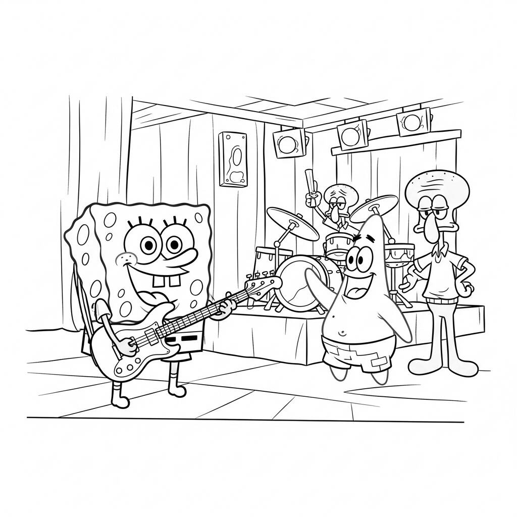 Bob Esponja estava animado com a ideia de formar uma banda com seus amigos do fundo do mar. Ele pegou sua guitarra e convidou Patrick, que ficou empolgado para tocar o tambor, e até mesmo o Squidward, que relutantemente aceitou tocar clarinete. Juntos, eles ensaiaram na Praça da Árvore do Algas, criando músicas divertidas que faziam todos os habitantes de Bikini Bottom dançarem. No grande dia do show, a expectativa estava nas alturas. Quando subiram ao palco, a plateia vibrou e, com suas músicas alegres, Bob Esponja e sua banda conquistaram o coração de todos, mostrando que a amizade e a música podem fazer qualquer dia ser especial.