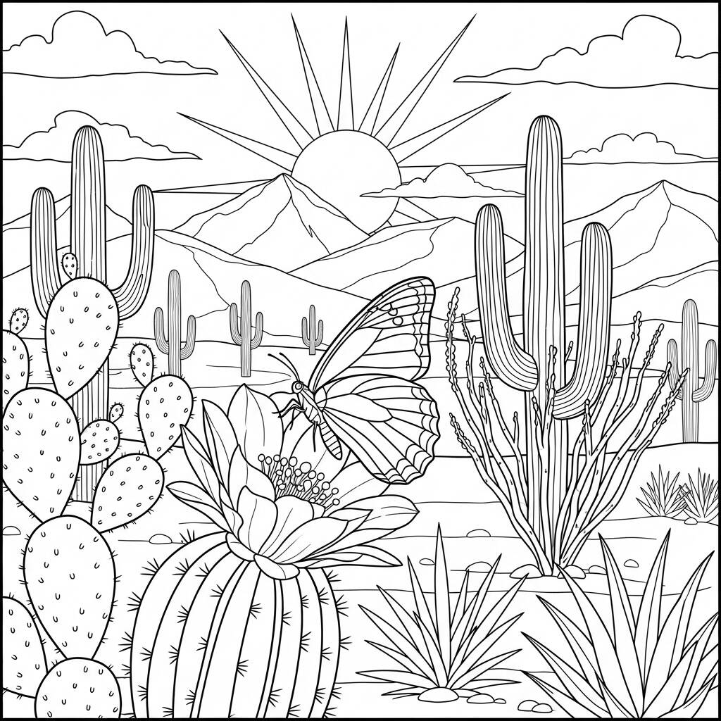 No deserto ensolarado, uma delicada borboleta de cores vibrantes pousou suavemente sobre a flor de um cacto. Ao seu redor, as plantas resistentes se destacavam, criando um contraste fascinante com a fragilidade da borboleta. Enquanto o vento suave soprava, a borboleta, em busca de néctar, sentiu a força da natureza ao seu redor, lembrando-a de que mesmo os ambientes mais áridos podem abrigar beleza e vida. O cacto, com seus espinhos protetores, oferecia um abrigo seguro, e juntos, a borboleta e o cacto formavam uma amizade improvável, simbolizando a harmonia entre a fragilidade e a resistência na vastidão do deserto.