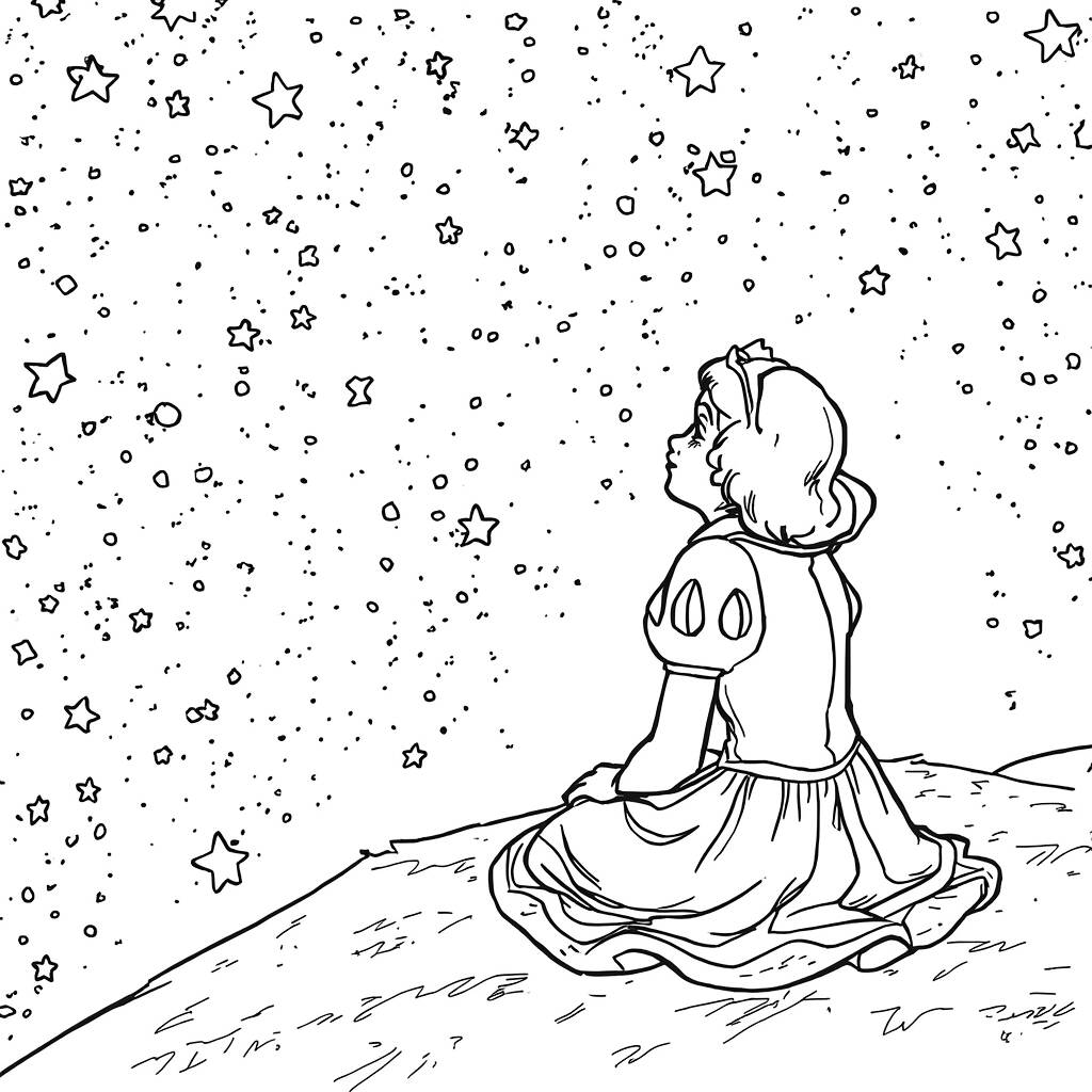 Em uma noite mágica, Branca de Neve sentou-se em uma colina, admirando o céu estrelado. As estrelas brilhavam intensamente, refletindo a beleza de seu coração puro. Enquanto contemplava o universo, lembrou-se dos setes anões e das aventuras que viveram juntos. Com um sorriso sonhador, ela fez um desejo, esperando que cada estrela pudesse ouvir suas esperanças e sonhos. As brisas suaves acariciavam seu rosto, trazendo consigo a promessa de novas jornadas e a certeza de que, mesmo nas noites mais escuras, a luz da amizade e do amor sempre brilhará, guiando-a por caminhos desconhecidos.