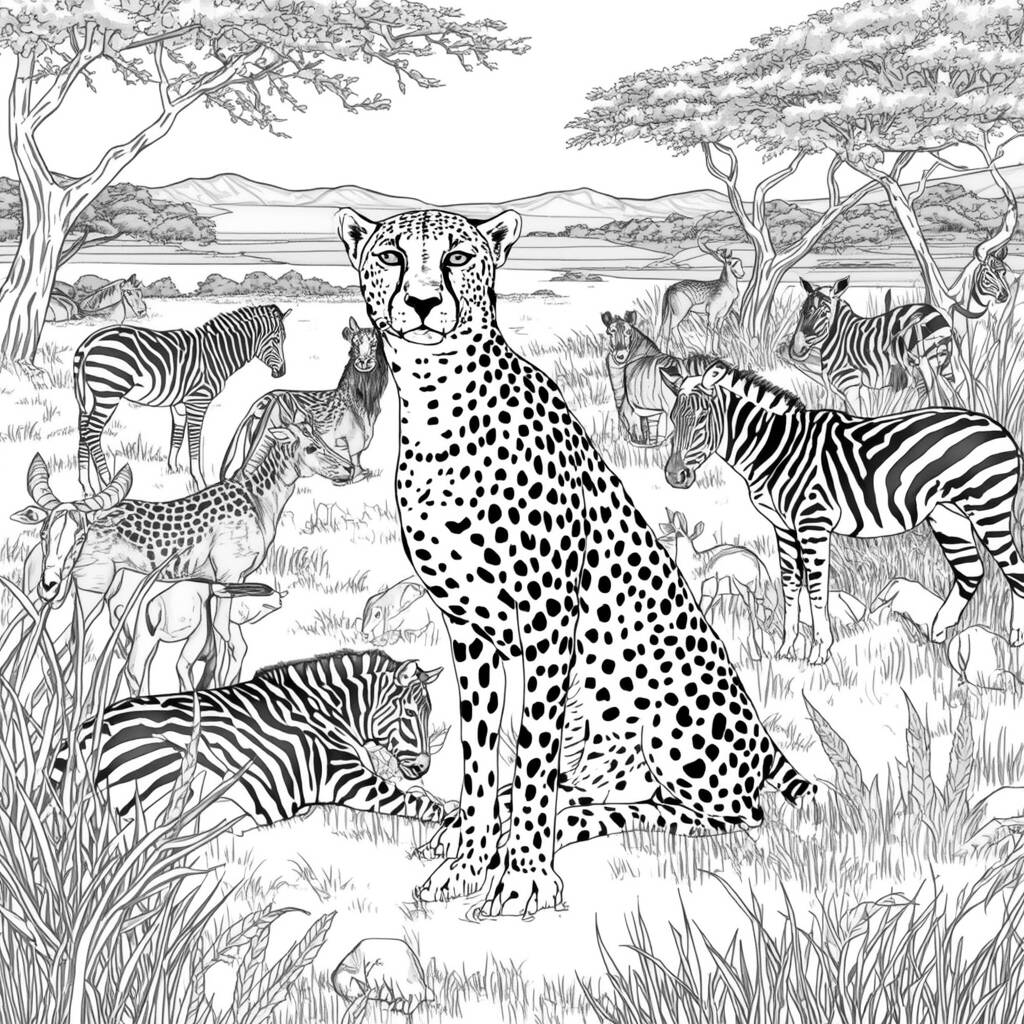 Chita, uma elegante guepardo, vivia em uma vasta savana repleta de vida. Todos os dias, ela corria livre entre as árvores e as gramíneas, admirando as gazelas que saltitavam graciosamente e as zebras que pastavam tranquilamente. Chita adorava observar o equilíbrio da natureza, onde cada animal desempenhava um papel importante. Um dia, enquanto explorava seu habitat, ela percebeu que um grupo de gazelas estava em perigo, cercado por predadores. Usando sua velocidade impressionante, Chita decidiu intervir, mostrando que a verdadeira força está em proteger os mais fracos. Assim, ela se tornou a guardiã da savana, unindo todos os animais em harmonia.