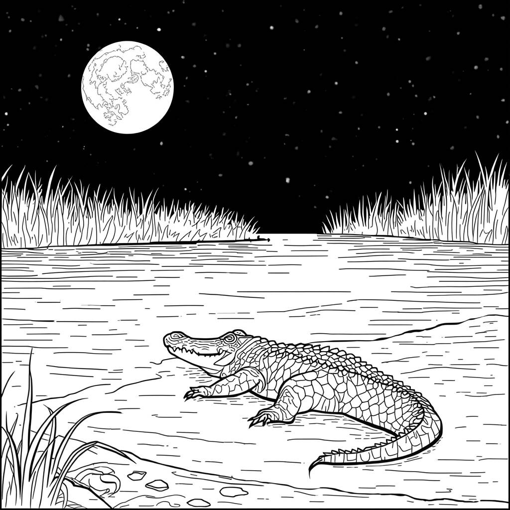 Na tranquilidade de uma noite estrelada, um crocodilo chamado Caio repousava na margem do rio, olhando para a lua que brilhava intensamente no céu. Ele sempre se sentiu fascinado pela beleza da lua, que refletia suavemente na água, criando um espetáculo de luzes e sombras. Enquanto os grilos cantavam e as estrelas piscavam, Caio sonhava em explorar o mundo além do rio, mas, por enquanto, ele se contentava em admirar a serenidade da noite. Com um profundo suspiro, ele fez um desejo silencioso para que a lua o guiasse em suas futuras aventuras, sentindo-se em paz com a natureza ao seu redor.