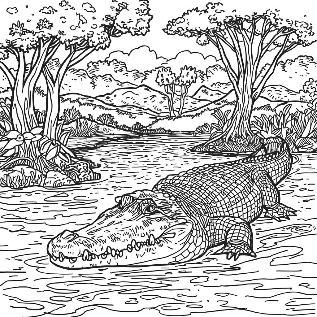 No coração da floresta tropical, um crocodilo chamado Caio vive em harmonia com a natureza ao seu redor. Ele passa os dias nadando nas águas tranquilas de um rio, cercado por árvores majestosas e flores coloridas. Caio adora observar os pássaros que cantam e os peixes que saltam, enquanto o sol brilha intensamente sobre sua pele escamosa. Um dia, ele decide explorar uma nova parte do rio, onde encontra um grupo de animais em perigo. Com coragem e determinação, Caio usa sua força para ajudar seus amigos, mostrando que, além de ser um predador temido, ele também pode ser um protetor da beleza da natureza.