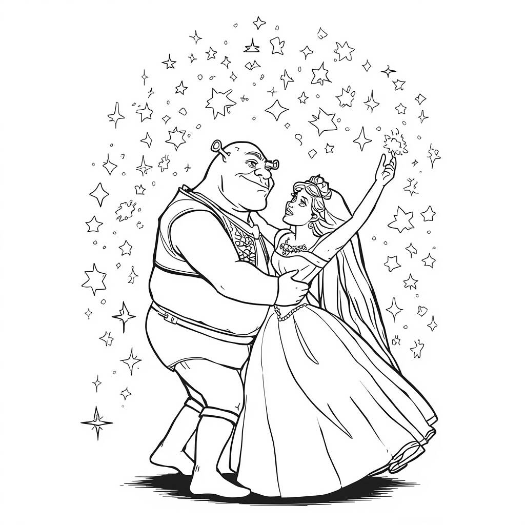 Em uma noite mágica, sob um céu repleto de estrelas brilhantes, Shrek e Fiona decidiram celebrar o amor que os uniu. Com as luzes cintilantes ao redor, os dois começaram a dançar, seus corações batendo em sintonia. A música suave do bosque envolvia o ar, enquanto criaturas mágicas se reuniam para assistir à cena encantadora. Fiona, com seu vestido verde esvoaçante, girava graciosamente, e Shrek, com seu sorriso largo, não conseguia esconder a felicidade. Juntos, eles criaram um momento inesquecível, onde a magia do amor e da amizade iluminava a noite, fazendo com que até os mais céticos acreditassem em contos de fadas.