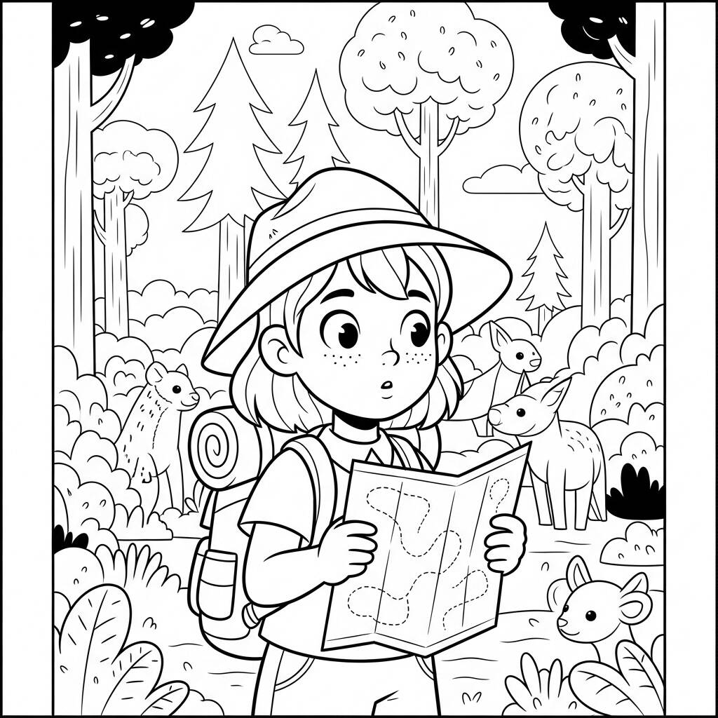 Em uma manhã ensolarada, Clara, a Garota Aventureira, decidiu explorar a floresta mágica que sempre sonhou conhecer. Com seu chapéu de exploradora e uma mochila cheia de suprimentos, ela se deparou com um mapa antigo que prometia levar a um tesouro escondido. Enquanto caminhava entre as árvores altas e ouvia o canto dos pássaros, Clara sentia a adrenalina da aventura pulsando em suas veias. Cada passo a levava mais fundo na floresta, onde criaturas fascinantes e plantas coloridas a cercavam. Com um brilho nos olhos e um sorriso no rosto, ela estava determinada a descobrir os segredos que a natureza guardava.