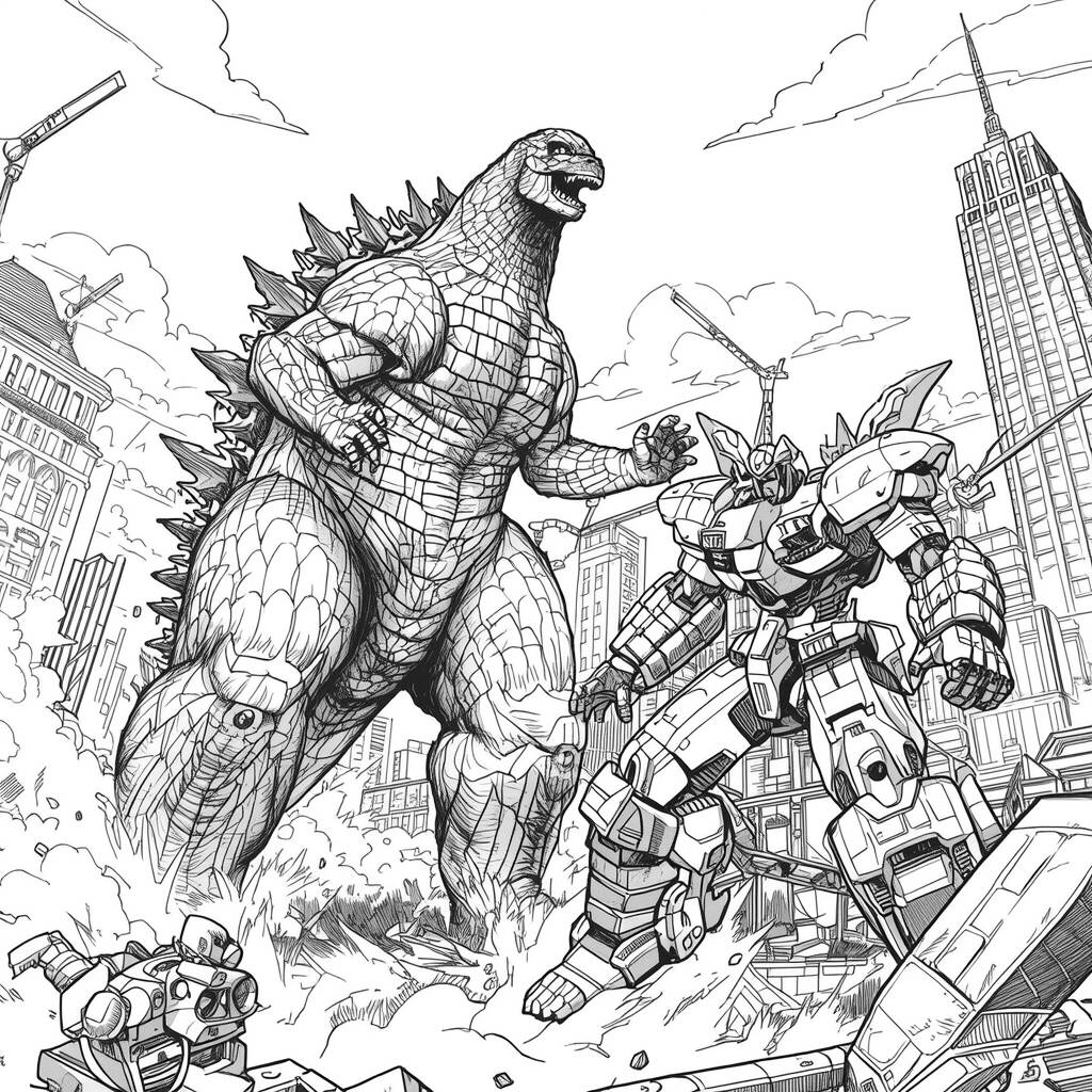 Em uma metrópole futurista, o céu escurece com a chegada de Godzilla, que avança em direção aos arranha-céus, rugindo com força. No entanto, uma corporação secreta ativa seus gigantescos robôs de combate, projetados para enfrentar a criatura. A batalha épica se desenrola entre os destroços da cidade, com Godzilla lançando seu poderoso raio atômico enquanto os robôs disparam lasers e tentam cercá-lo com suas garras mecânicas. Os cidadãos, aterrorizados, assistem do chão, torcendo para que seus heróis de metal consigam deter a fera colossal. A luta entre a natureza e a tecnologia se intensifica, prometendo um desfecho explosivo e inesperado.