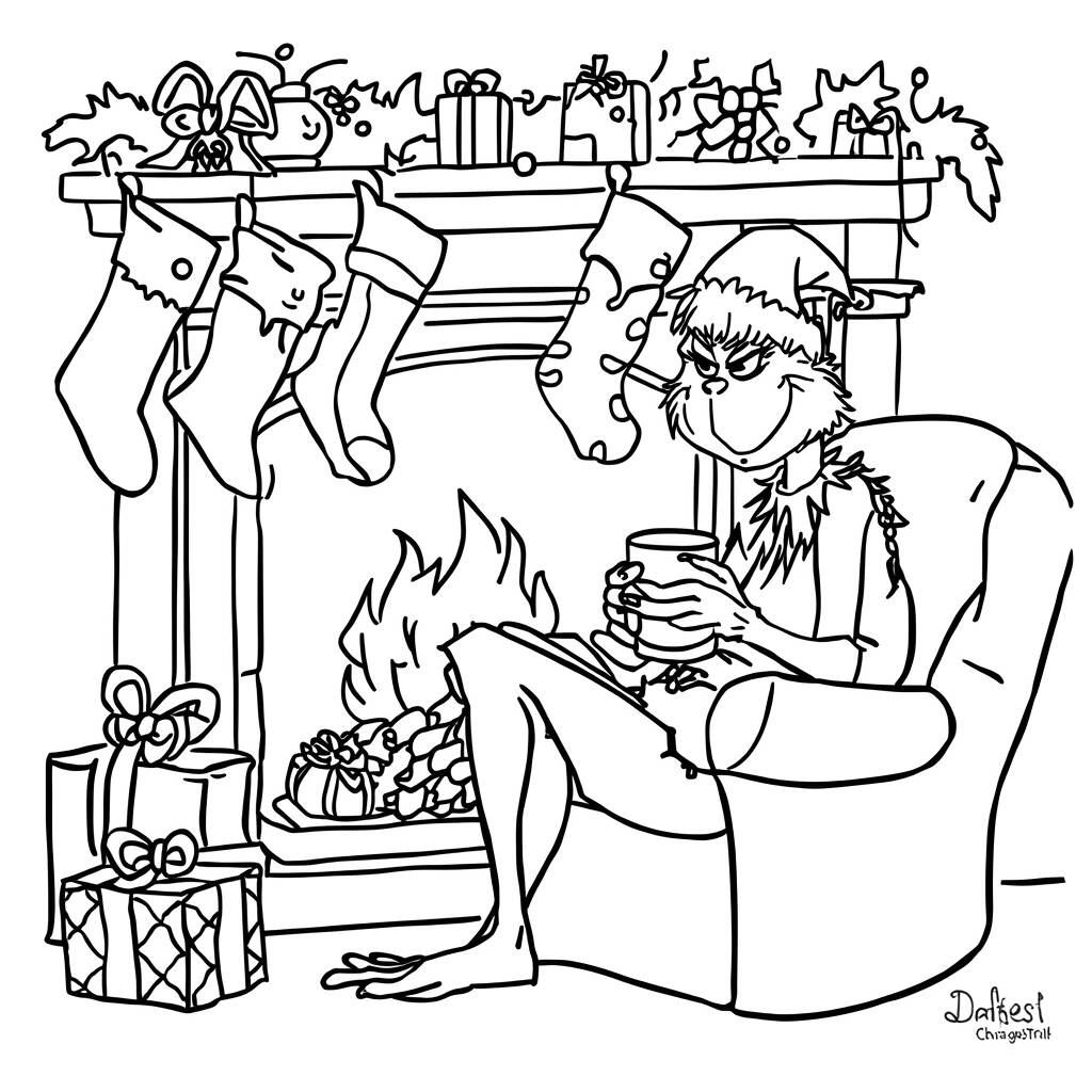 O Grinch, após anos de amargura e solidão, finalmente decidiu mudar sua forma de ver o Natal. Em uma noite fria, ele se acomodou em sua poltrona favorita, perto da lareira crepitante, enquanto segurava uma caneca de chocolate quente. Observando as meias penduradas e as luzes brilhantes que iluminavam sua caverna, ele sentiu uma onda de calor no coração. Lembranças de risos e alegria começaram a invadir sua mente, e pela primeira vez, ele sorriu verdadeiramente. O espírito natalino estava começando a aquecer seu interior, e ele percebeu que o Natal não era apenas sobre presentes, mas sobre amor e amizade.