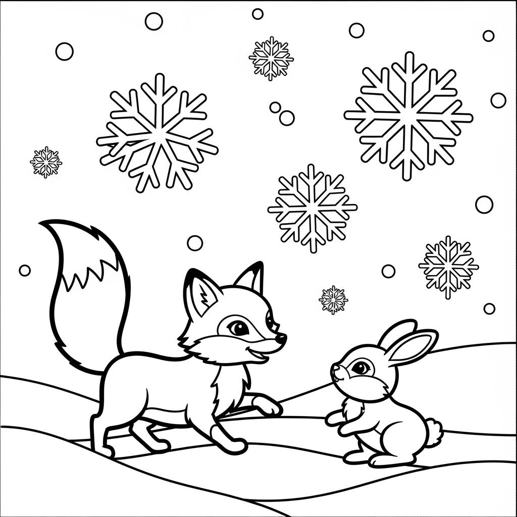 No coração do inverno, a floresta se transforma em um conto de fadas coberto de neve. Um astuto raposo e uma coelhinha brincalhona se tornam os melhores amigos, explorando os campos brancos e deslizando sobre flocos de neve que dançam ao vento. Juntos, eles constroem um iglu de neve e fazem bolas de neve para se divertir. Enquanto a noite cai, eles se aconchegam sob uma árvore coberta de neve, contando histórias sobre suas aventuras e sonhando com as próximas brincadeiras. O inverno pode ser frio, mas na companhia um do outro, eles descobrem a verdadeira magia da estação.