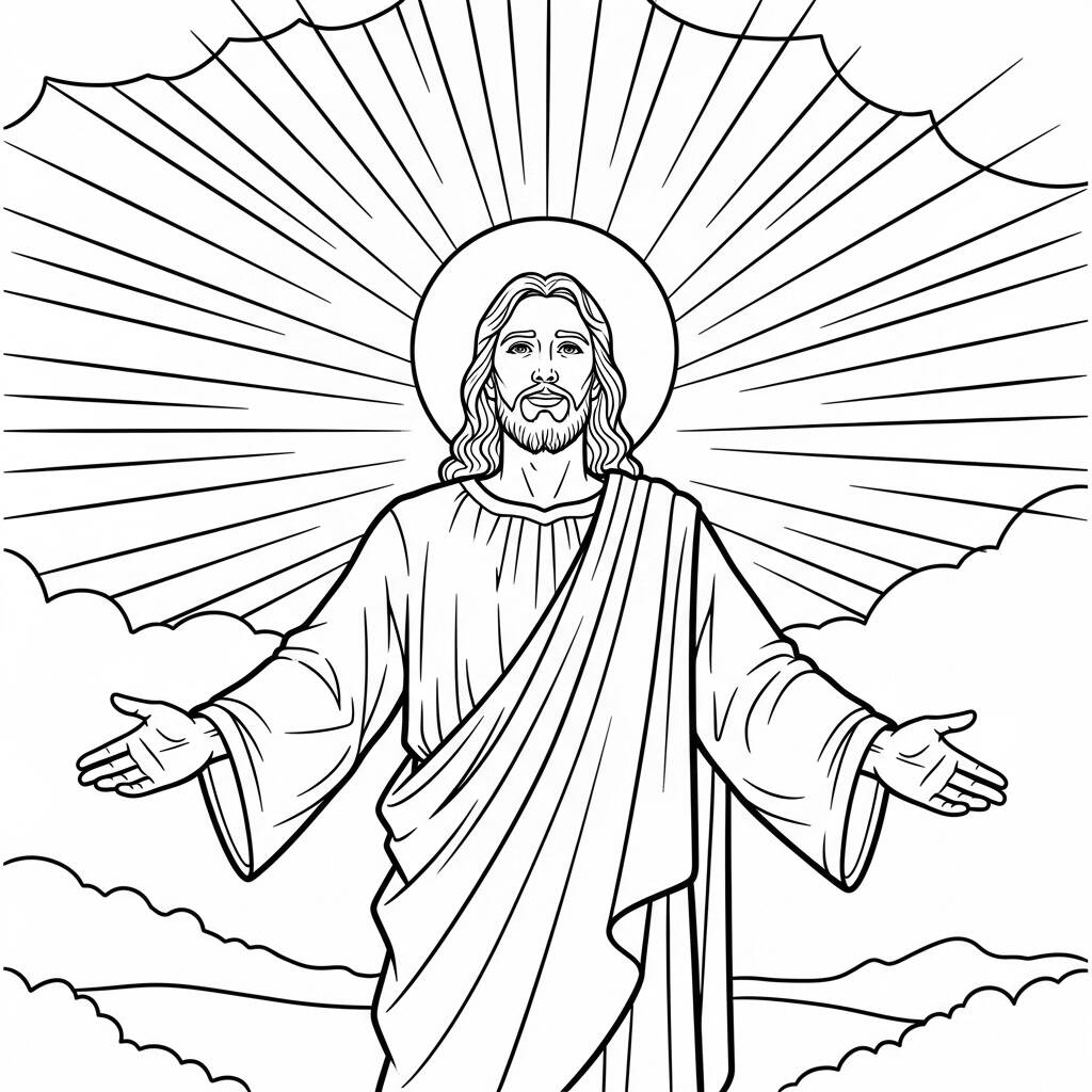 Em uma pequena aldeia, a luz da esperança parecia ter se apagado. As pessoas estavam tristes e sem direção, até que um dia, Jesus apareceu com os braços abertos, irradiando uma luz intensa e calorosa. Ele caminhou entre os aldeões, oferecendo amor e conforto, mostrando-lhes que mesmo nas horas mais sombrias, a fé e a união poderiam iluminar seus caminhos. Com suas palavras de encorajamento, ele trouxe sorrisos e renovou a esperança nos corações de todos. Assim, a aldeia voltou a brilhar, unida pela luz que Jesus havia compartilhado, lembrando a todos que sempre há um caminho para a felicidade.