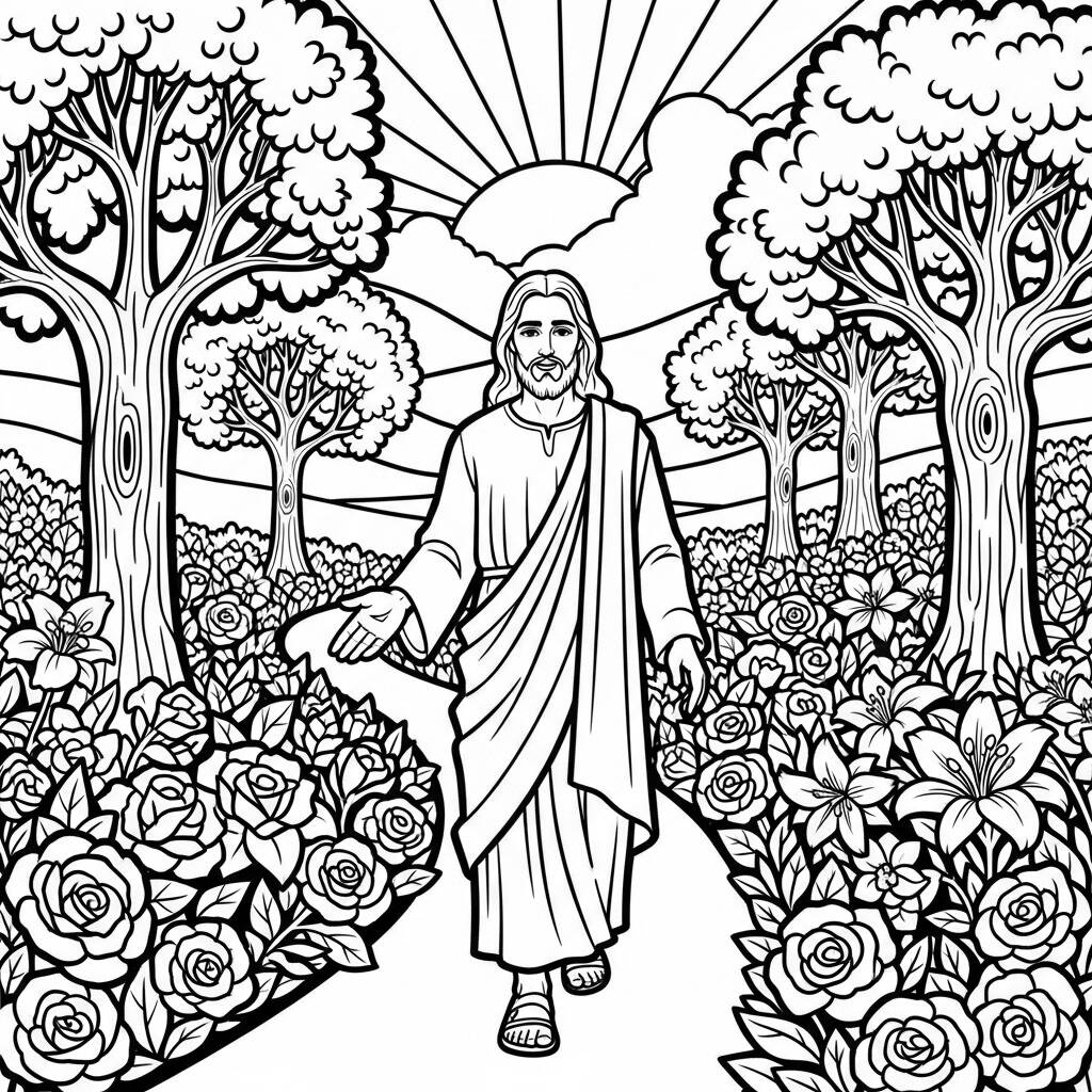 Jesus caminhava por um caminho florido, rodeado por árvores frondosas que dançavam ao vento. A luz do sol filtrava-se entre as folhas, criando um espetáculo de sombras e luz que refletia a beleza da fé. Enquanto avançava, Ele encontrava pessoas em busca de esperança e amor. Com um sorriso acolhedor, Jesus compartilhava mensagens de paz e compaixão, mostrando que cada passo na jornada da vida é repleto de aprendizado e crescimento. Os seguidores se uniam a Ele, sentindo a força da sua presença e a certeza de que, independentemente das dificuldades, o amor sempre prevaleceria. Juntos, eles criavam um caminho de luz e fé, iluminando a escuridão ao redor.