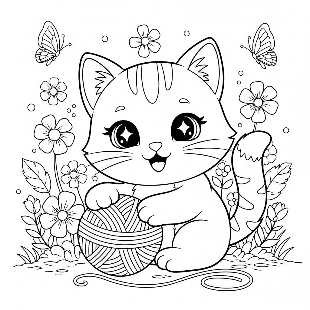 Em um lindo jardim repleto de flores coloridas e borboletas dançantes, um adorável gato kawaii se divertia brincando com uma bola de lã. Seus grandes olhos brilhantes refletiam a felicidade enquanto ele pulava de um lado para o outro, tentando pegar a lã que se desenrolava pelo chão. A cada movimento, o gato soltava pequenos miados de alegria, atraindo a atenção de todos ao redor. O sol brilhava, e a brisa suave trazia o perfume das flores, tornando aquele momento ainda mais especial. Era um dia perfeito para brincar e explorar, e o gato fofo estava determinado a aproveitar cada segundo dessa divertida aventura no jardim.