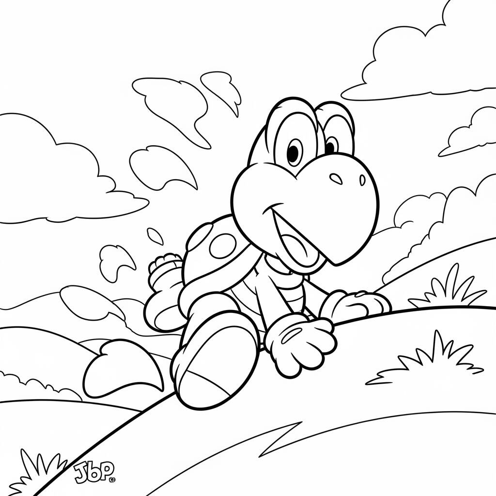 Koopa Troopa estava se divertindo em um dia ensolarado no Reino dos Cogumelos. Ele decidiu descer uma colina enorme com um grande sorriso no rosto, preparado para a aventura. Ao deslizar pela ladeira, Koopa sentiu a brisa fresca e a adrenalina correndo em suas veias. No caminho, ele encontrou alguns amigos, como Mario e Luigi, que torciam e aplaudiam sua coragem. Com cada volta e curva, Koopa se sentia mais livre e feliz, enquanto a paisagem vibrante do reino passava rapidamente por ele. Era um momento de pura alegria, e ele sabia que a diversão estava apenas começando!