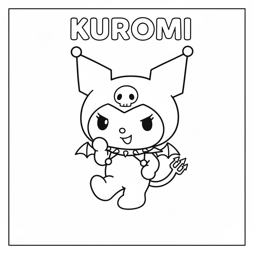 Uma divertida imagem da Kuromi pronta para colorir, perfeita para fãs da personagem.