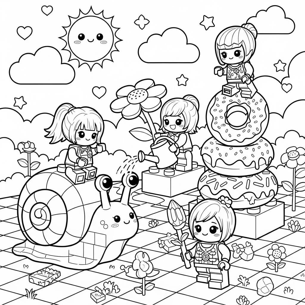 Em um mundo encantado de Lego, onde tudo é feito de peças coloridas, um grupo de adoráveis personagens Kawaii decide organizar uma grande festa de aniversário para seu amigo Robô. Com balões gigantes feitos de blocos e um bolo de camadas de Lego, todos trabalham juntos para criar a decoração mais fofa possível. A pequena Unicórnio, com seu brilho especial, traz uma chuva de estrelas enquanto o Coelho dançarino ensina passos divertidos. Ao som de risadas e brincadeiras, a festa se transforma em um evento mágico, onde a amizade e a criatividade se encontram, trazendo sorrisos a todos os habitantes do reino Lego.