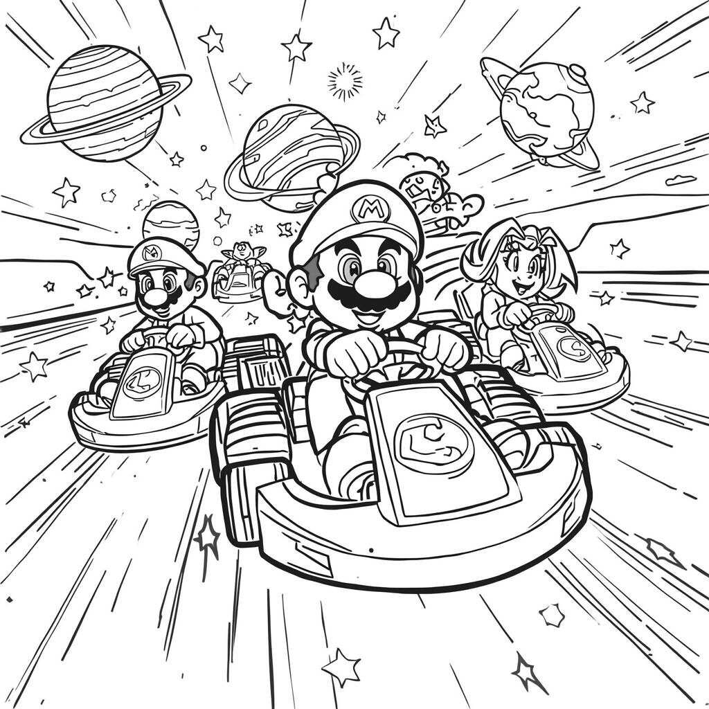 No vasto espaço sideral, Mario e seus amigos decidiram levar a competição de kart para um nível totalmente novo. Com karts futuristas equipados com propulsores de antigravidade, eles voaram entre planetas coloridos e estrelas brilhantes, enfrentando desafios cósmicos a cada curva. Luigi, sempre determinado, tentava alcançar Mario, enquanto Princesa Peach usava seus poderes mágicos para criar atalhos através de asteroides. Donkey Kong desafiava a gravidade, saltando de um cometa a outro, e Yoshi, com sua habilidade única, surpreendia a todos com manobras inesperadas. A corrida estava acirrada, e quem levaria a vitória nessa aventura intergaláctica?